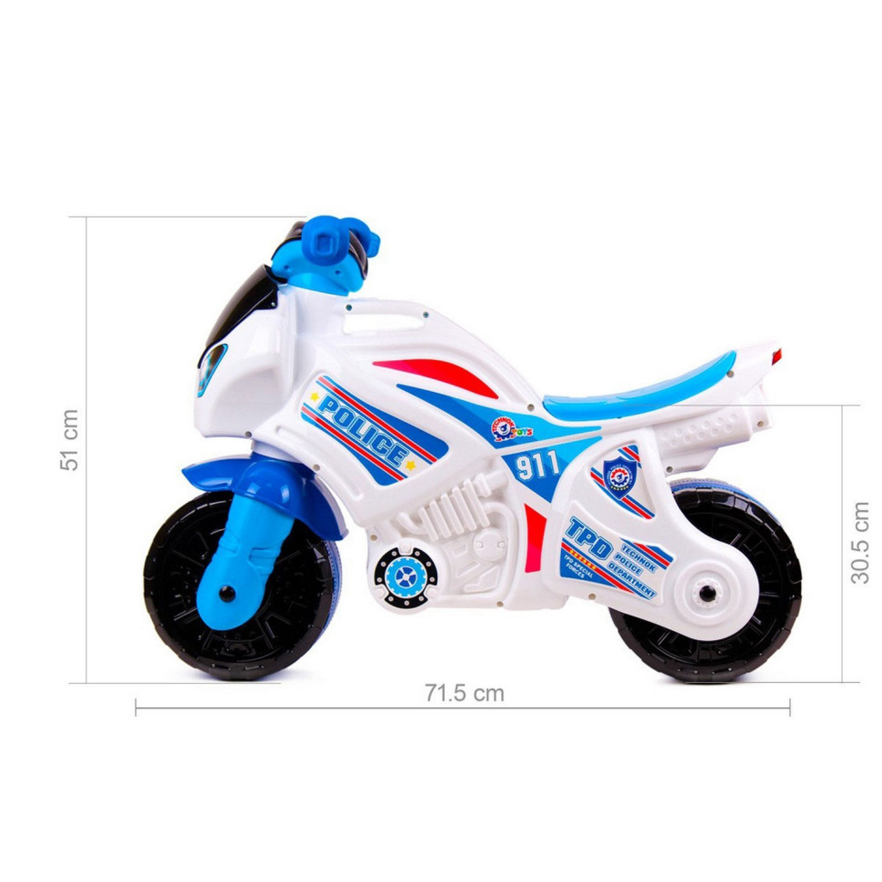 Кожен малюк хоче відчути себе справжнім героєм. Бути поліцейським – це так почесно! Для наших маленьких патрульних ми розробили спеціальний транспорт – іграшку «Мотоцикл ТехноК». Байк білого кольору з яскравими поліцейськими наклейками стане улюбленою іграшкою ваших дітей. Дітям буде весело самостійно кататись на ньому, відштовхуючись ніжками від землі. Широкі колеса мотоцикла із вставкою забезпечують комфортну їзду у приміщенні та на вулиці. Також нашими інженерами розрахована оптимальна ширина керма, що дозволяє малюкам майстерно керувати байком. Ручки на кермі виготовлені з м'якого та еластичного матеріалу. Якщо ж Ваша дитина втомилася – батькам буде легко переносити мотоцикл за спеціальну ручку, розташовану на корпусі. З іграшкою «Мотоцикл ТехноК» Ваш малюк відчує себе справжнім поліцейським! Розмір мотоцикла: 71.5х51х35 см