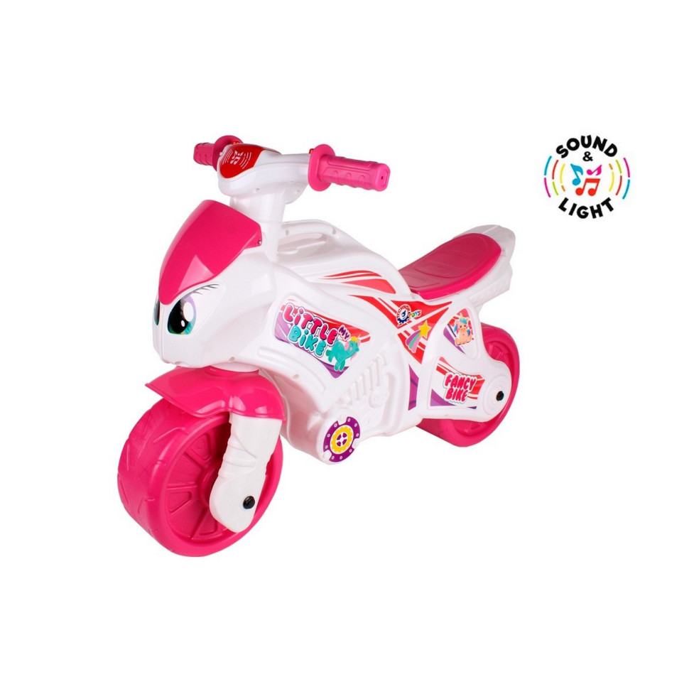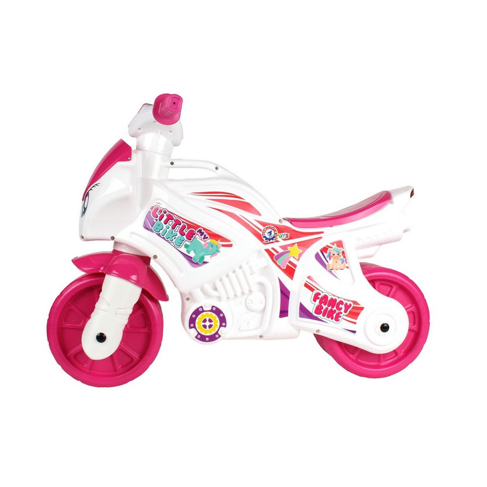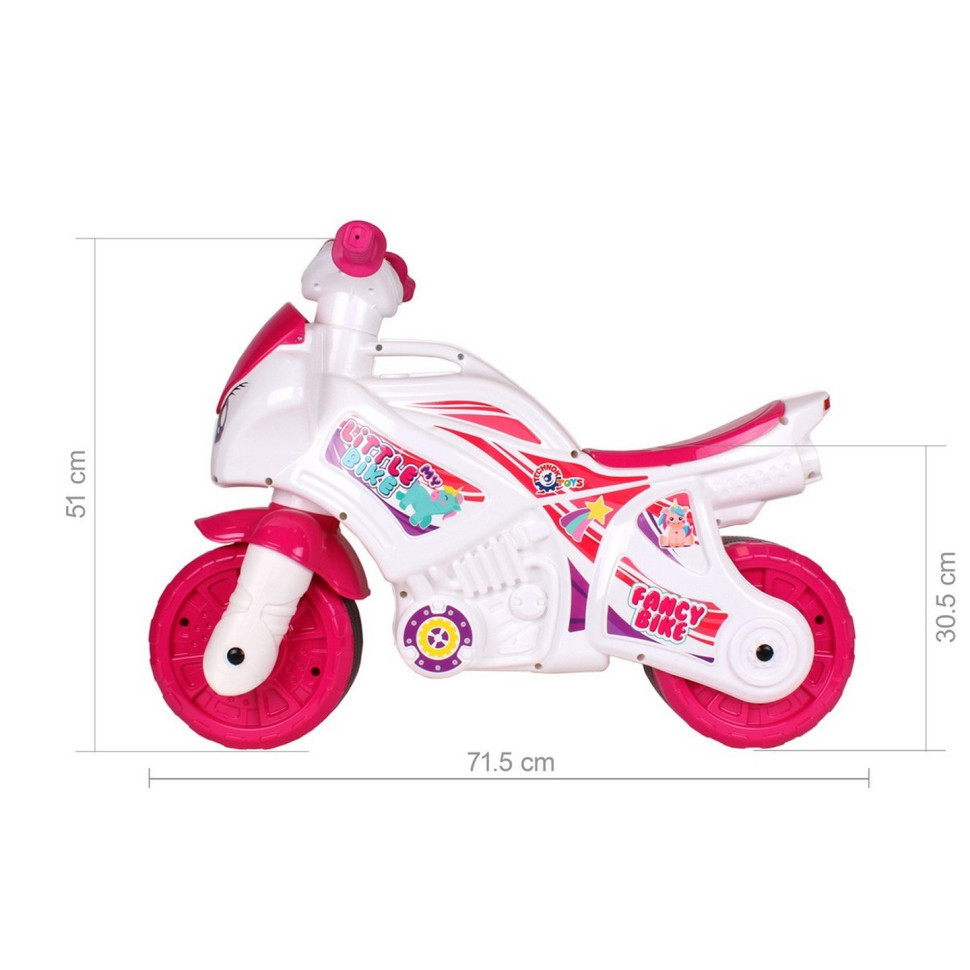 Поповнення у серії іграшкового автомототранспорту - "Мотоцикл ТехноК" у рожевих кольорах з електронікою. Цікавий сучасний дизайн, світлові та музичні ефекти – це байк для сучасних принцес. Оригінальною родзинкою мотоциклів є великі стійкі колеса, виготовлені методом видування. Завдяки цьому вони є "тиші" під час їзди. І тепер можна їздити на улюбленому мотоциклі навіть удома, не заважаючи сусідам :) Оптимально підібрана ширина керма, з м'якими еластичними ручками, робить байк зручним при керуванні. На корпусі мотоцикла передбачена спеціальна ручка, яку зручно його переносити. Особливістю цієї іграшки є вбудовані музичні та світлові ефекти. Мотоцикл має дві кнопки, при натисканні на кожну з яких можна отримати різні варіанти звуку від сигнального звуку типу фа-фа до потужного гарчання, як у реальних крутих байках. З таким мотоциклом ігри стануть ще яскравішими та різноманітнішими. Іграшка "Мотоцикл ТехноК" стане справжнім двоколісним другом для Ваших дівчаток! Виготовлений мотоцикл із міцного якісного пластику без запаху. Розмір беговела: 72х35х52 см.