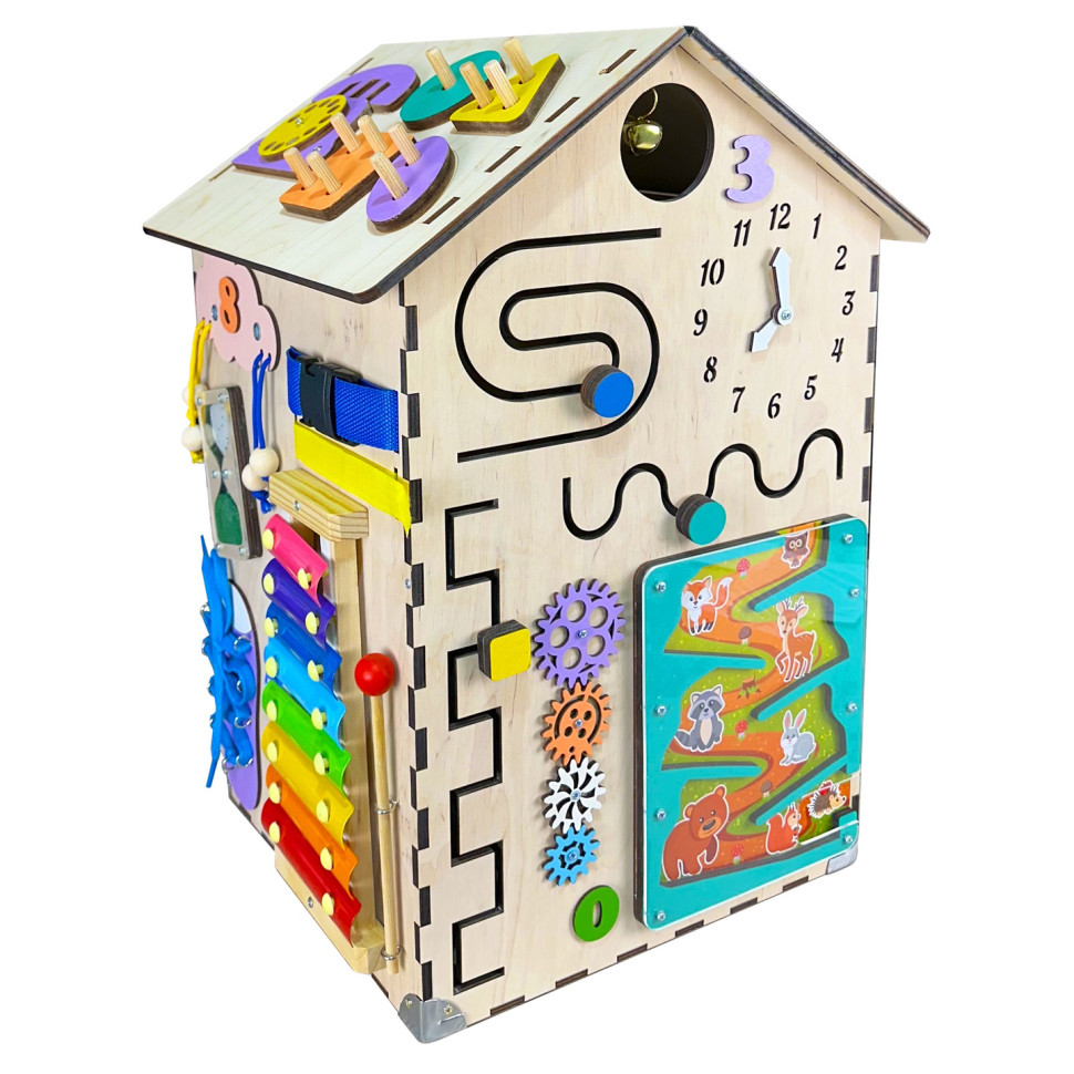 Під час взаємодії з елементами будиночка активно розвивається дрібна моторика, а разом із нею - пам’ять, увага, мислення, координація рухів, уява та мовні здібності. Адже на пальцях і долонях розташовані нервові закінчення, безпосередньо пов'язані з центрами головного мозку.