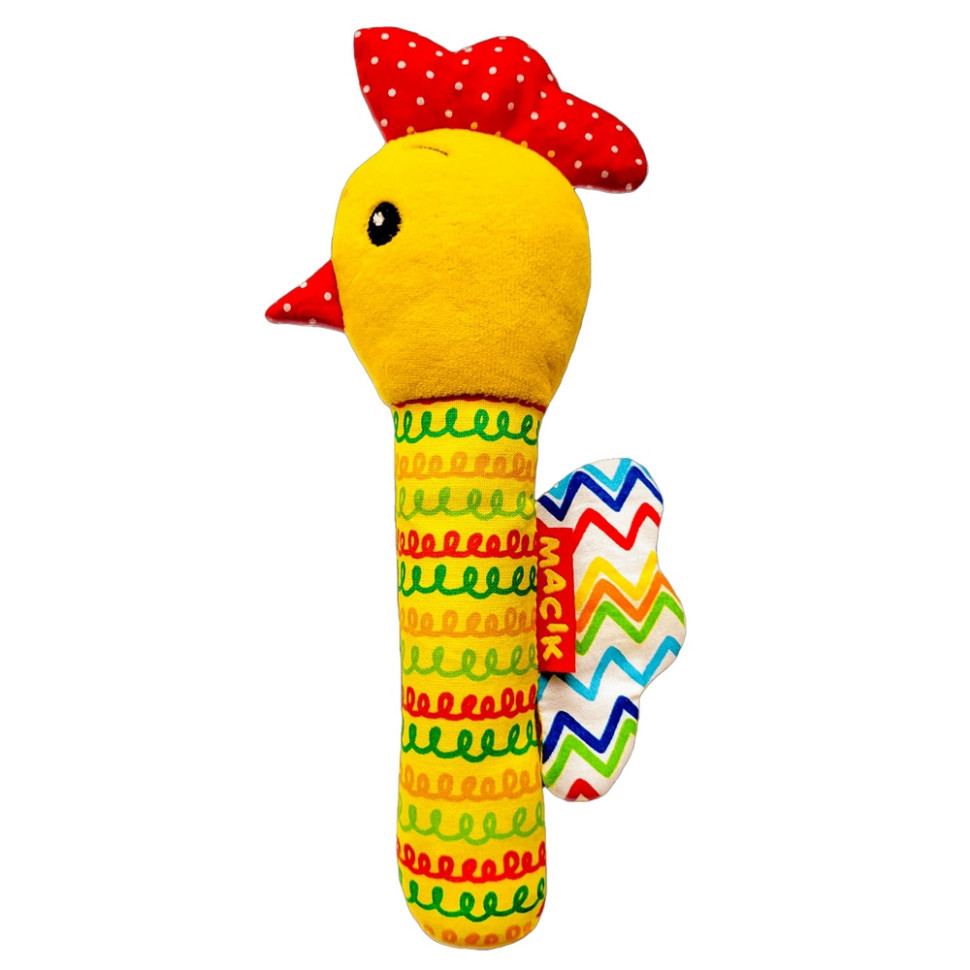 Іграшка проста і зрозуміла, м'яка та безпечна, містить пискавку і крильце, що шелестить.
