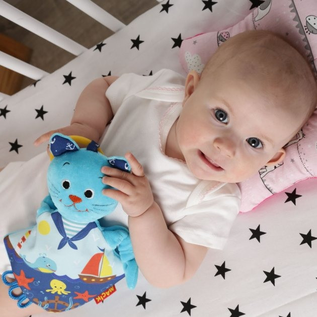 Форма, розмір і наповнення іграшки відповідає віковим особливостям малюка, тому її зручно тримати маленькими ручками.