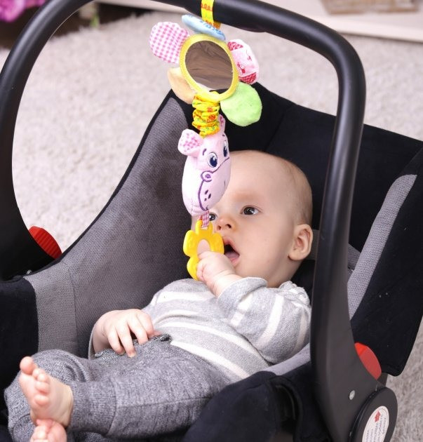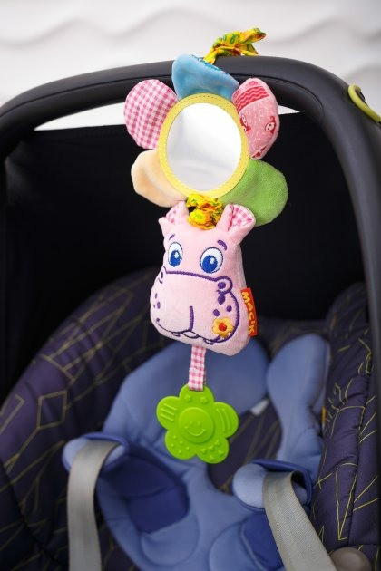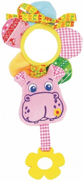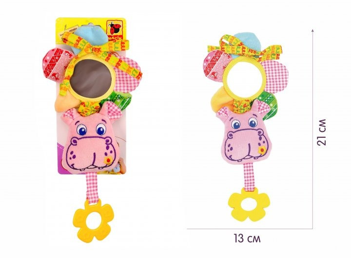 Забавна вібруюча іграшка створена для наймолодших «дослідників». Малюки будуть в захваті: можна зазирнути в люстерко або натиснути на дзвінку пискавку, пом'яти шелесткі пелюстки або спробувати «смачний» прорізувач. Потягніть за іграшку, і вона почне дзвінко вібрувати. Іграшка приємна і м'яка на дотик, тому що виконана з натуральних слинопоглинаючих матеріалів. Завдяки універсальному кріпленню іграшку можна закріпити на колясці, ліжечку, автокріслі або до дуг розвиваючого килимка. Склад: бавовняна тканина; різнофактурні матеріали; швейна фурнітура; звукові елементи; холлофайбер; вібромеханізм. Розмір: 13 × 21 × 5 см.