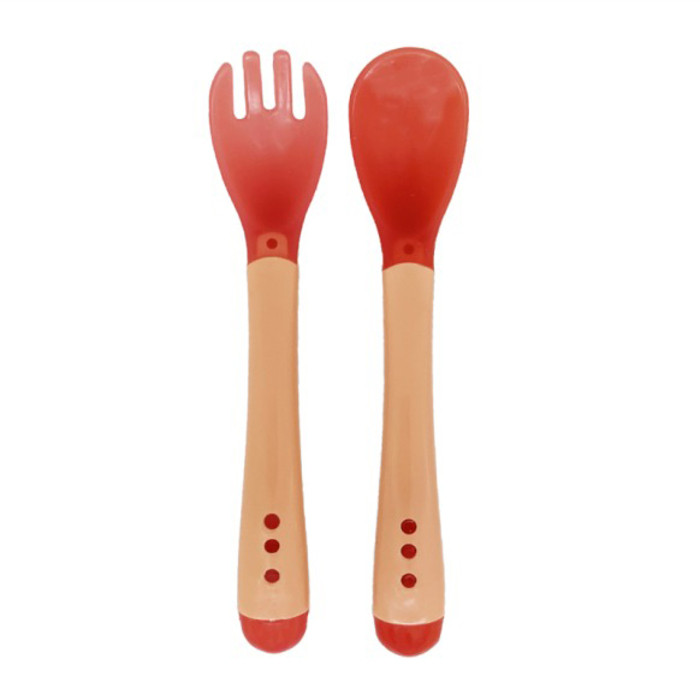 Для того щоб ваша дитина могла вчитися самостійно їсти, радимо придбати такий Набір Ложка+вилка з індикатором температури. Яскравий дизайн і зручна силіконова рукоятка допоможуть зробити процес годування не тільки веселим, а й безпечним.
