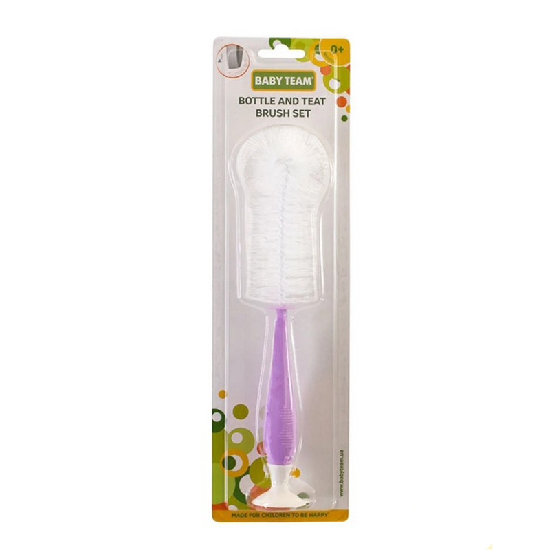 BABY TEAM Розроблений для м'якого очищення пляшечок, сосок а також відмінно підходить для чашок. Практичні, легкі ручки дозволяє ретельно очистити дитячі пляшечки для годування. Йоржик для сосок ретельно усуває найменші залишки на внутрішній поверхні соски. Йоржик має присоску для зручності зберігання. Йоржики Baby team виготовлені з високоякісних і безпечних матеріалів, а також не містять шкідливих речовин і Бісфенол А.