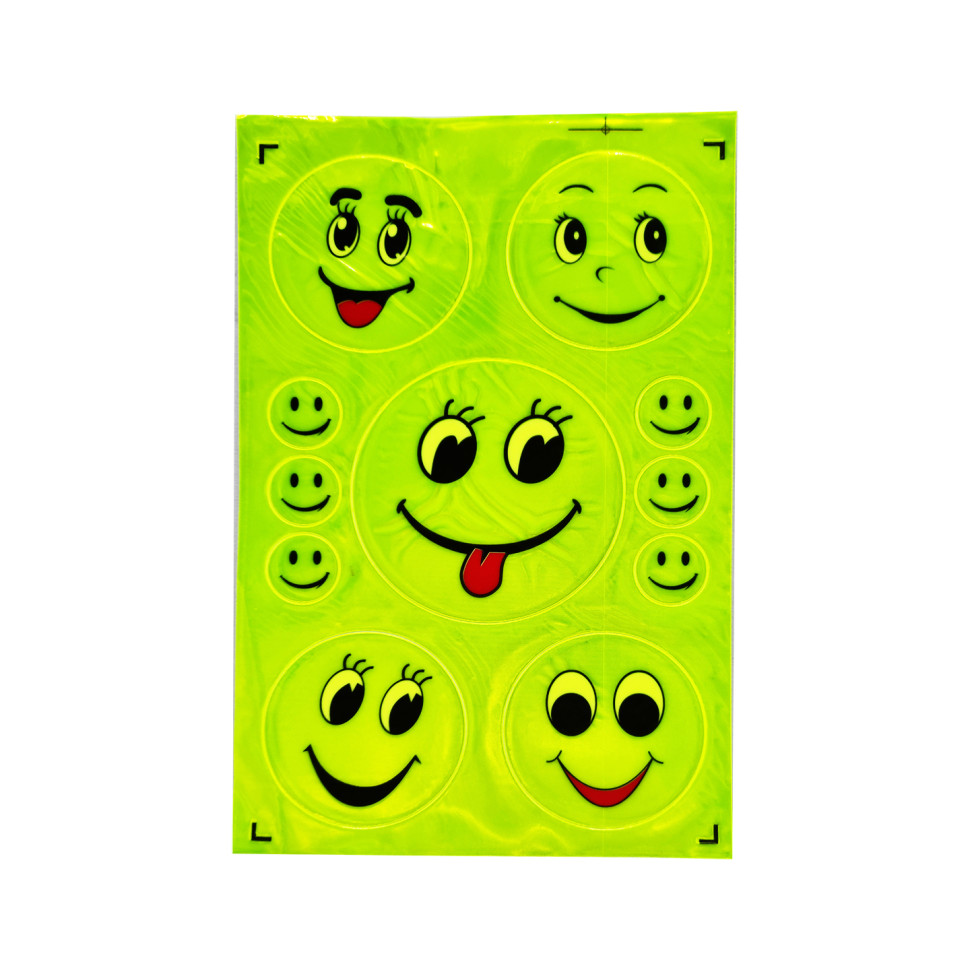 Світловідбивна наклейка у формі смайлу – це стильний та дуже корисний аксесуар. Наклейка допоможе пішоходу або водієві велосипеда уникнути нещасного випадку у нічний та вечірній час доби. Ви можете приклеїти її до керма велосипеда, пояса, рюкзака або сумки.