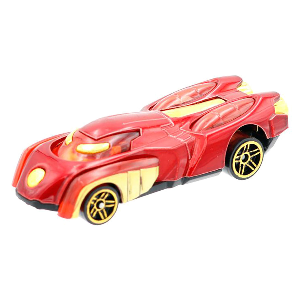 Набір яскравих металевих машинок, стилізованих під символи кожного з героїв Всесвіту Марвел - рішучий Капітан Америка, могутній Халк, спритна Людина-Павук та неспинна Залізна Людина.