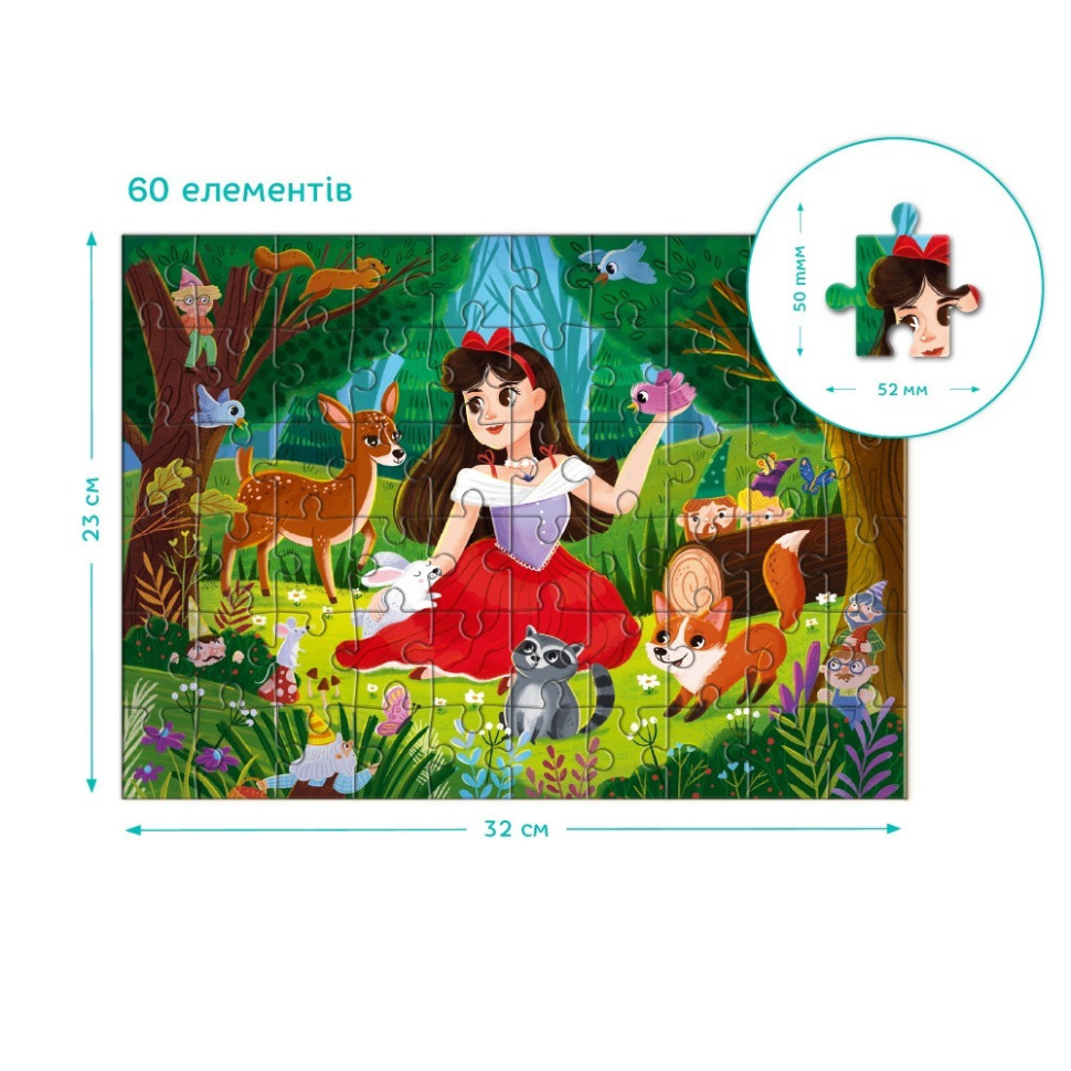 Пазл Dodo "Білосніжка" — захоплива та яскрава дитяча головоломка, яка запрошує малюка у чарівний світ класичної казки!