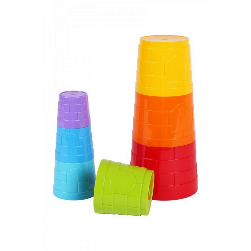 Іграшка «Пірамідка» – це класичні пірамідки з 7-ми елементів, круглої форми, які своєю формою нагадують вежі середньовічного замку – з вікнами та дверима та кам'яною кладкою.