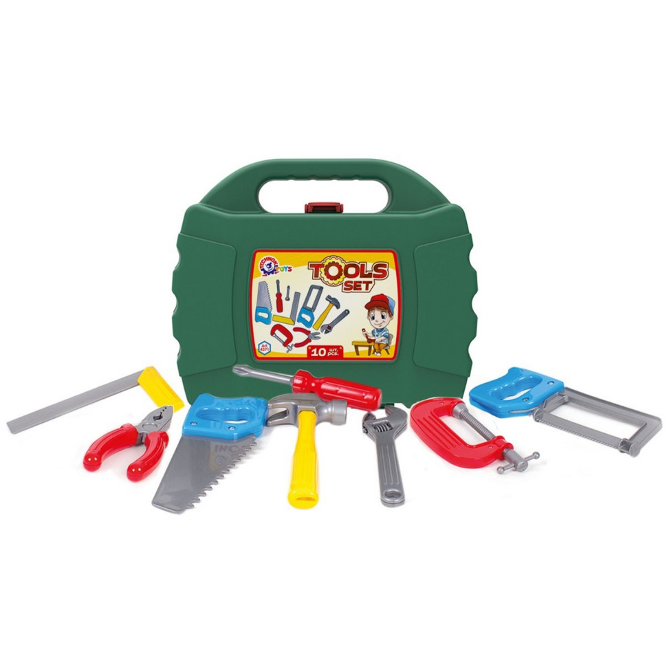 Ми пропонуємо нашим маленьким покупцям справжній набір інструментів, саме такий, який має кожен хороший господар. До речі, коли тато побачить у руках свого малюка інструменти, він одразу згадає про кран, що протікає на кухні, про що вже кілька разів згадувала мама, і таки зрештою підтягне гайку. А малюк отримає чудовий урок на прикладі батька.