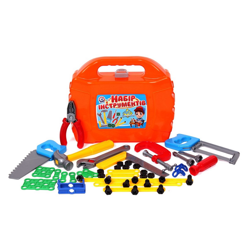 Іграшка доповнює "класичний" набір інструментів (молоток, пилки, викрутки, плоскогубці та ін.) елементами конструктора, а саме: пластикові планки, куточки, пластини, болти та гайки. Це чудова нагода для малюка освоїти принципи роботи різьбових з'єднань, що безумовно буде затребуване в "дорослому" житті.