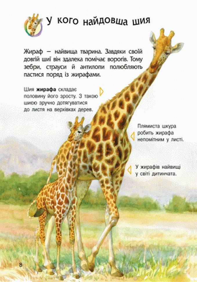 Розглядайте разом картинки, читайте тексти, знайомтеся з великими кішками, спритними мавпами, розумними слонами, дізнавайтеся про те, як влаштована людина, знайомтеся з порами року, деревами і квітами, дізнавайтеся про роль транспорту в житті людини і багато, багато іншого.