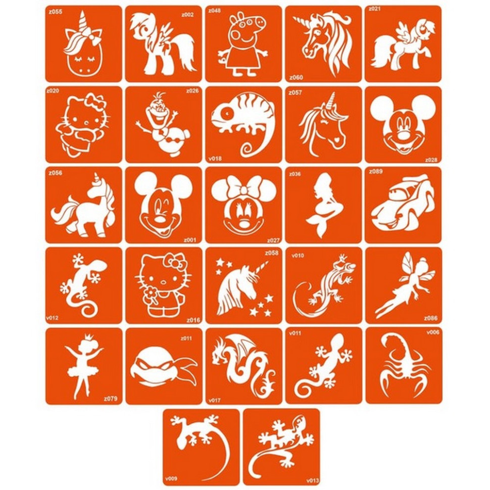 Набір трафаретів для біо-тату «V+Z - дракони, ящірки та мультики» v-z-simple_24_1
