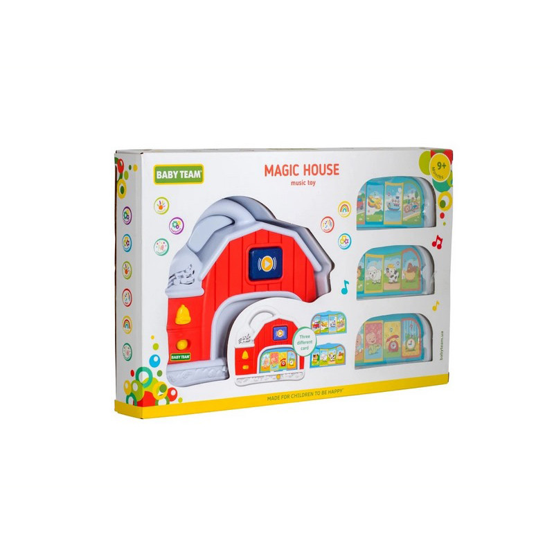 BABY TEAM Музична іграшка приверне увагу малюка та зачарує мелодіями або різноманітними звуками. Має 3 картки, кожна з яких містить по 4 звукових ефекти. Розвиває координацію рухів, концентрацію, увагу, дрібну моторику, слух та колірне сприйняття. Необхідно ААх3 батарейки (входять в комплект лише для демонстрації функцій). Іграшки BABY TEAM виготовлені з високоякісних і безпечних матеріалів, а також не містять шкідливих речовин і Бісфенол А.
