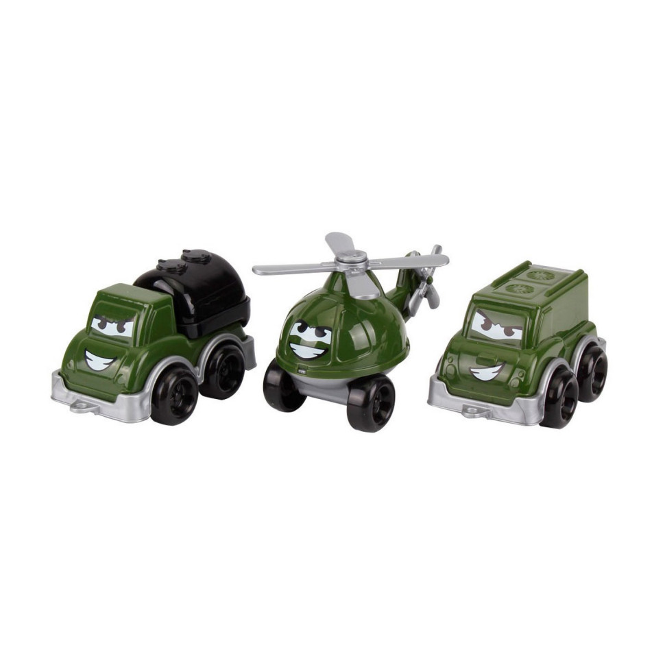 У наборі маленькі бензовоз, вертоліт і мікроавтобус. З іграшками цікаво грати в пісочниці та вдома. Можна відвойовувати території, захищати будівлі та нападати на ворога.