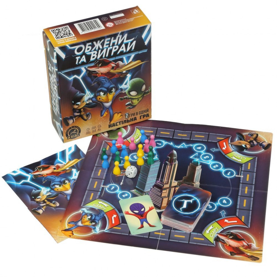 Комплектація: ігрове поле, 16 ігрових фішок, кубик, комплект карт і правила гри.