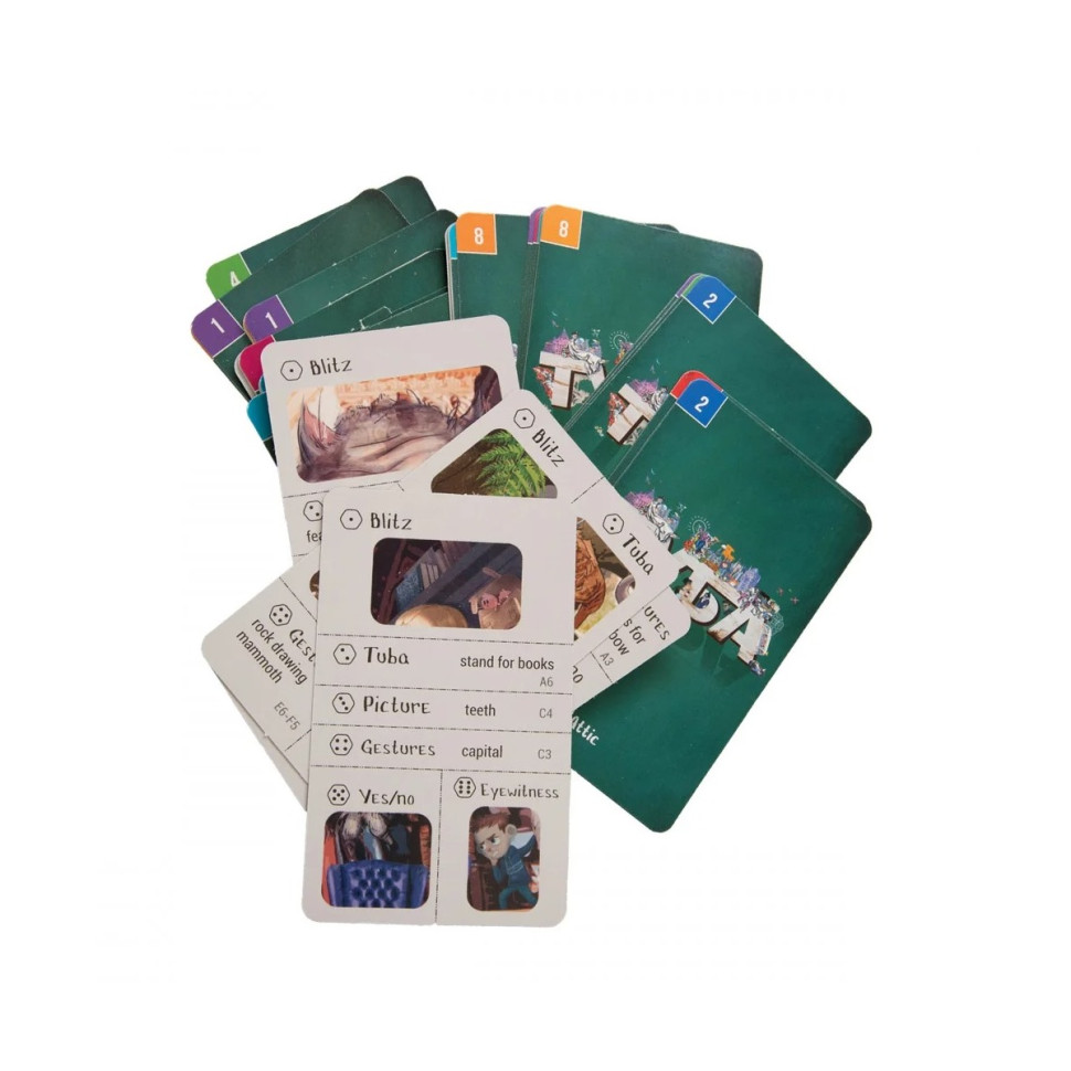Головний предмет гри – дерев'яна туба, яка встановлюється на столі. Усі гравці отримують ігрові поля з будь-яким сюжетом. Один із гравців стає здаючим, вибирає картки із завданнями та відповідно до очок, що випали на кубику, одним із способів – словами, малюнками чи жестами – описує предмет на ігровому полі. Гравець, який першим схопив тубу, відповідає на запитання. Якщо відповідь неправильна, він повинен повернути тубу на місце і передати хід іншому гравцю.