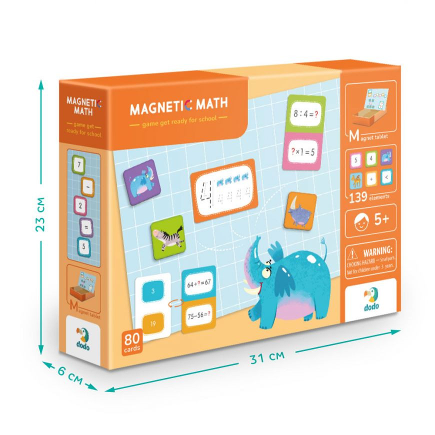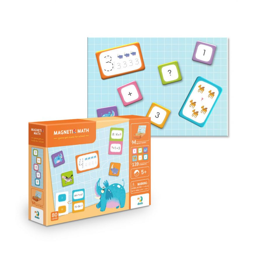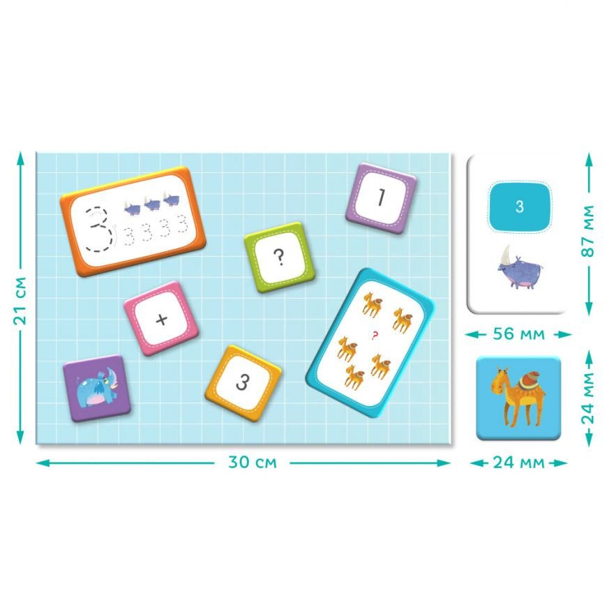 Вивчаємо математику із яскравими магнітами. У грі Магніти Математика - магнітна планшетка, підставка під неї, карти для навчання, магнітні елементи з цифрами, тваринами та прикладами. Це ж подвійна користь – дитина весело проводить час і вчиться рахувати швидко. Можна грати лише з картками, вчитися писати чи додавати побудову прикладів із магнітів.