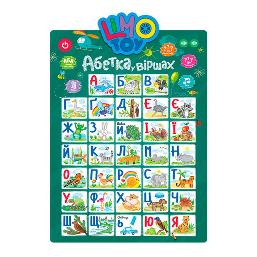 Інтерактивний плакат допоможе дитині вивчити букви українського алфавіту, поєднувати їх у слова, а також розрізняти кольори. Крім цього з таким плакатом можна співати пісеньку і заучувати забавні скоромовки, розвиваючи при цьому слухове сприйняття і мовний апарат.