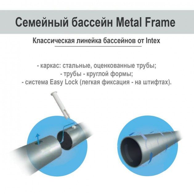 Даний каркасний басейн має таку ж якість, як і інші великі і дорогі басейни, фірми Intex. Тобто, незалежно від розміру басейну, якість завжди буде на вищому рівні, адже, не дарма, Фірма Intex є лідером на ринку каркасних басейнів!