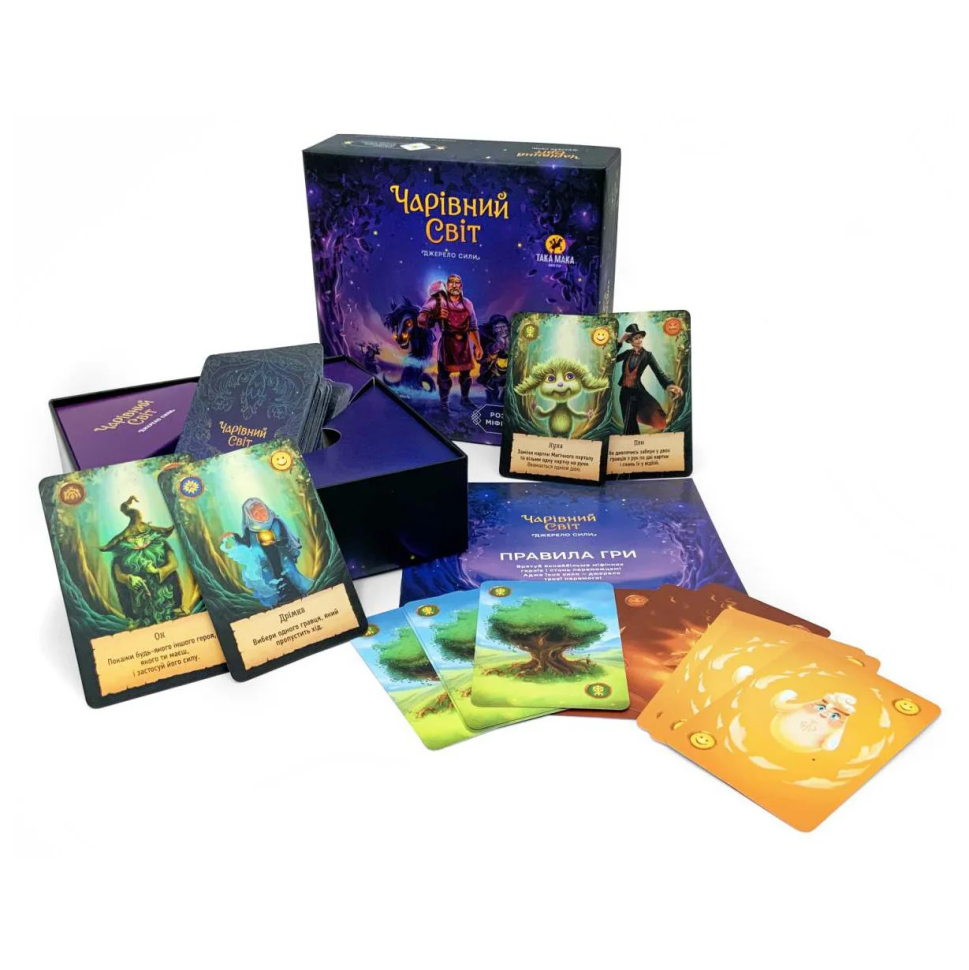 Настольная га "Волшебный мир" - это карточная игра для детей младшего школьного возраста и семейной забавы. Основная цель игры спасти как можно больше мифических героев и стать победителем!