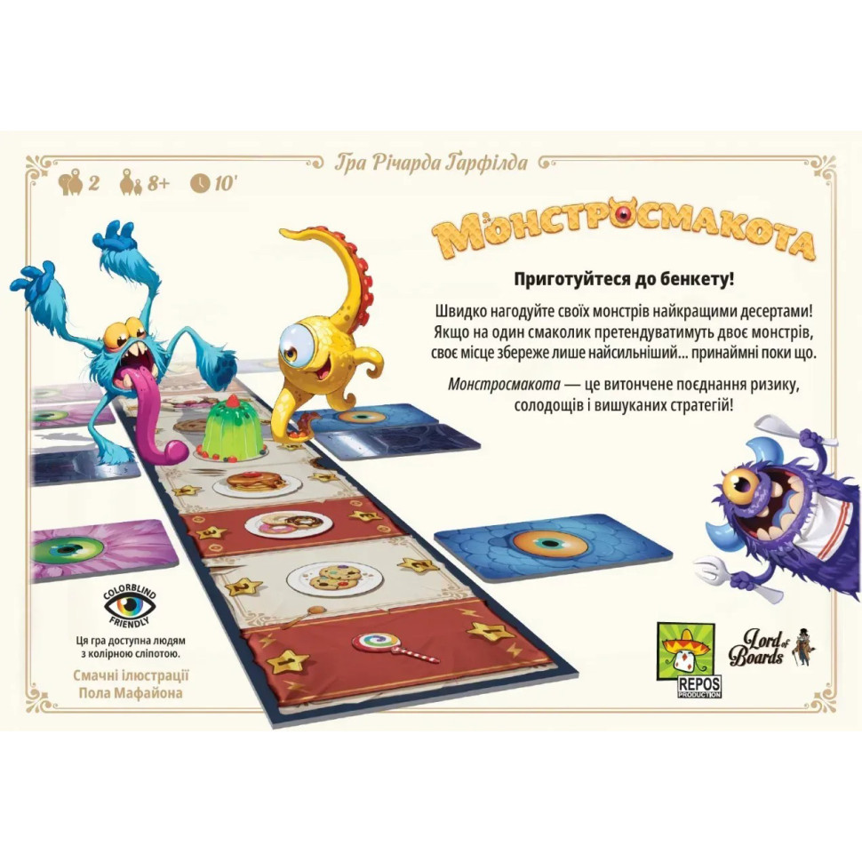 Монстросмакота (Monstrolicious) - швидка дуельна настільна гра, у якій гравці намагаються нагодувати своїх монстрів і заробити більше переможних очок.