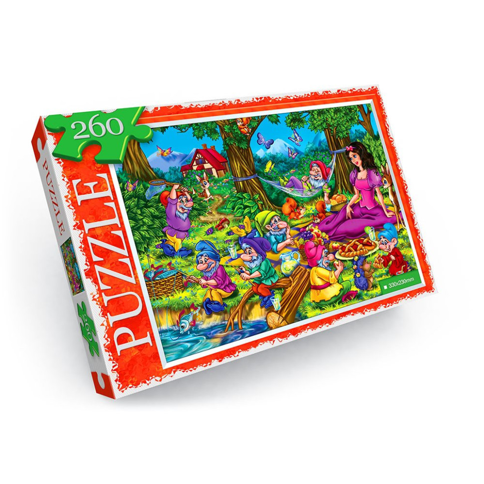 Пазл складається з 260 елементів. Яскравий барвистий дизайн знайде своїх шанувальників як серед дітей, так і дорослих. Розмір готової картини: 33х23 см. Упаковка: картонна коробка в термоусадочну плівку. Розмір: 28x19.4x3.3 см.