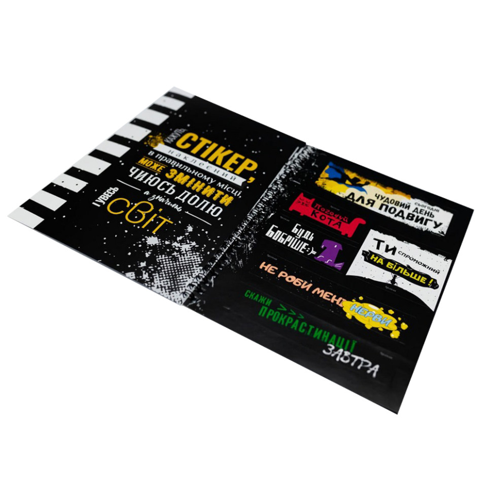 Мотиваційний стікербук - це книжечка, яка містить 36 мотивуючих наклейки (стікера).