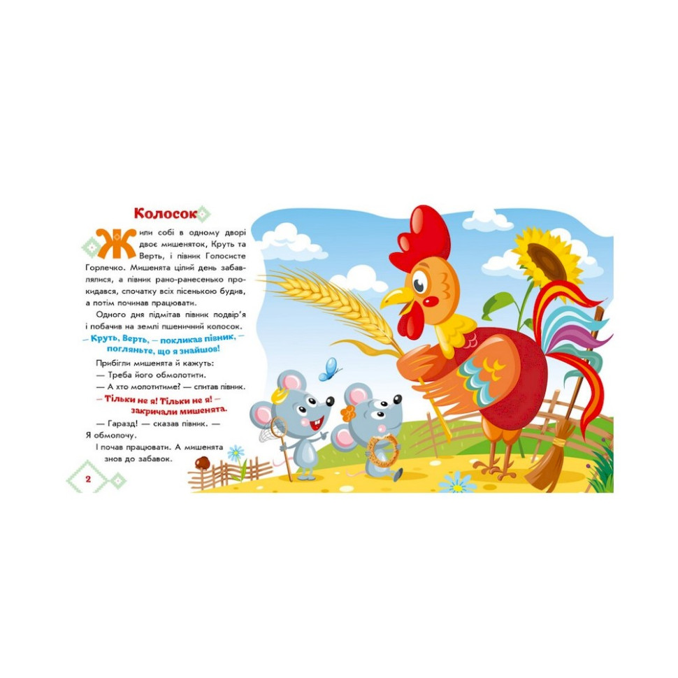 Казки знайомлять малечу з навколишнім світом, вчать розрізняти добро і зло, а ще — передають мудрість багатьох поколінь. Розгорнувши книжку "Колосок" серії «Українські казочки», дитина порине в дивовижний світ хоробрих і кмітливих героїв, яким до снаги впоратися з будь-якими труднощами., а яскраві та веселі ілюстрації створять ефект «мультфільму на сторінках» і неодмінно захоплять уяву маленького читача.