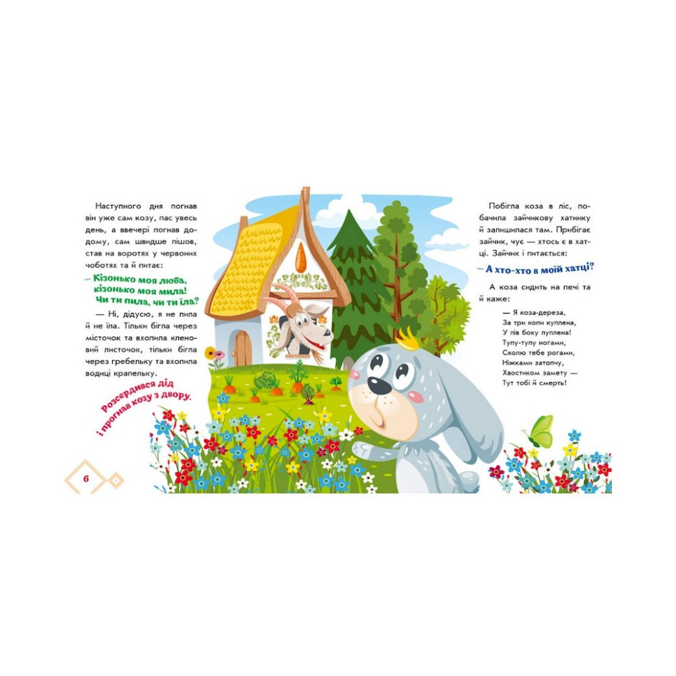 Казки знайомлять малечу з навколишнім світом, вчать розрізняти добро і зло, а ще — передають мудрість багатьох поколінь. Розгорнувши книжку "Коза-дереза" серії «Українські казочки», дитина порине в дивовижний світ хоробрих і кмітливих героїв, яким до снаги впоратися з будь-якими труднощами, а яскраві та веселі ілюстрації створять ефект «мультфільму на сторінках» і неодмінно захоплять уяву маленького читача.