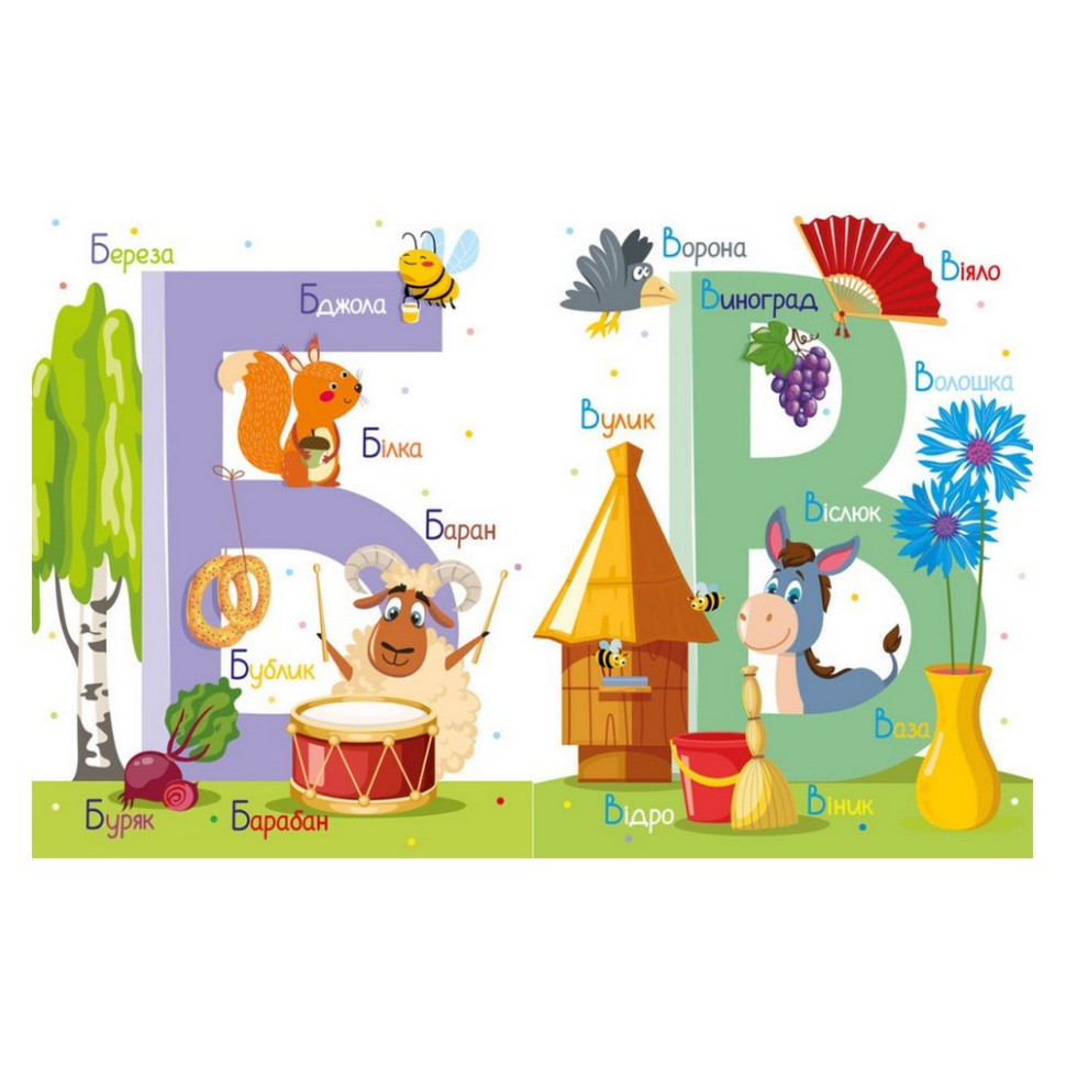 тут є все для того, щоб малюк з задоволенням вивчив літери, поповнив словниковий запас та почав читати!