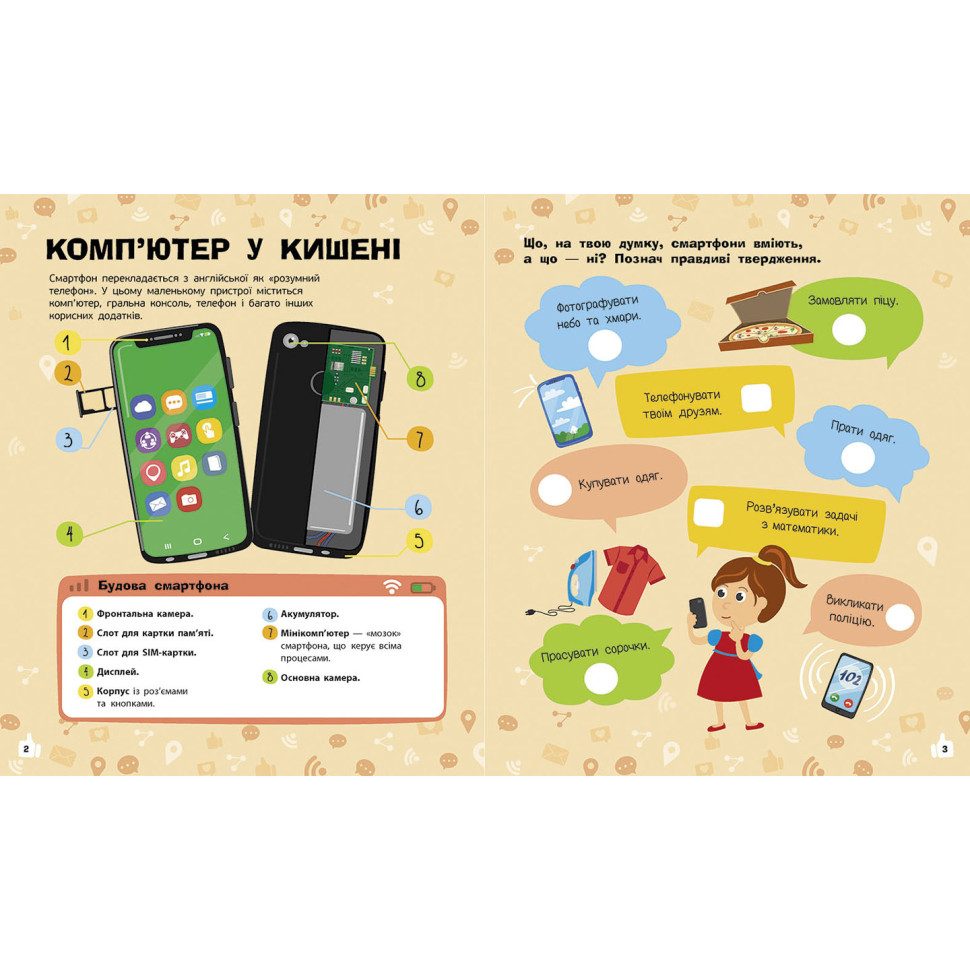 Ці книжки мега-пізнавально-технологічні: тут смартфони, комп’ютери, рόботи та інтернет розповідають про те, як вони працюють. У книжках поєднано факти-цікавинки, активіті та наліпки.