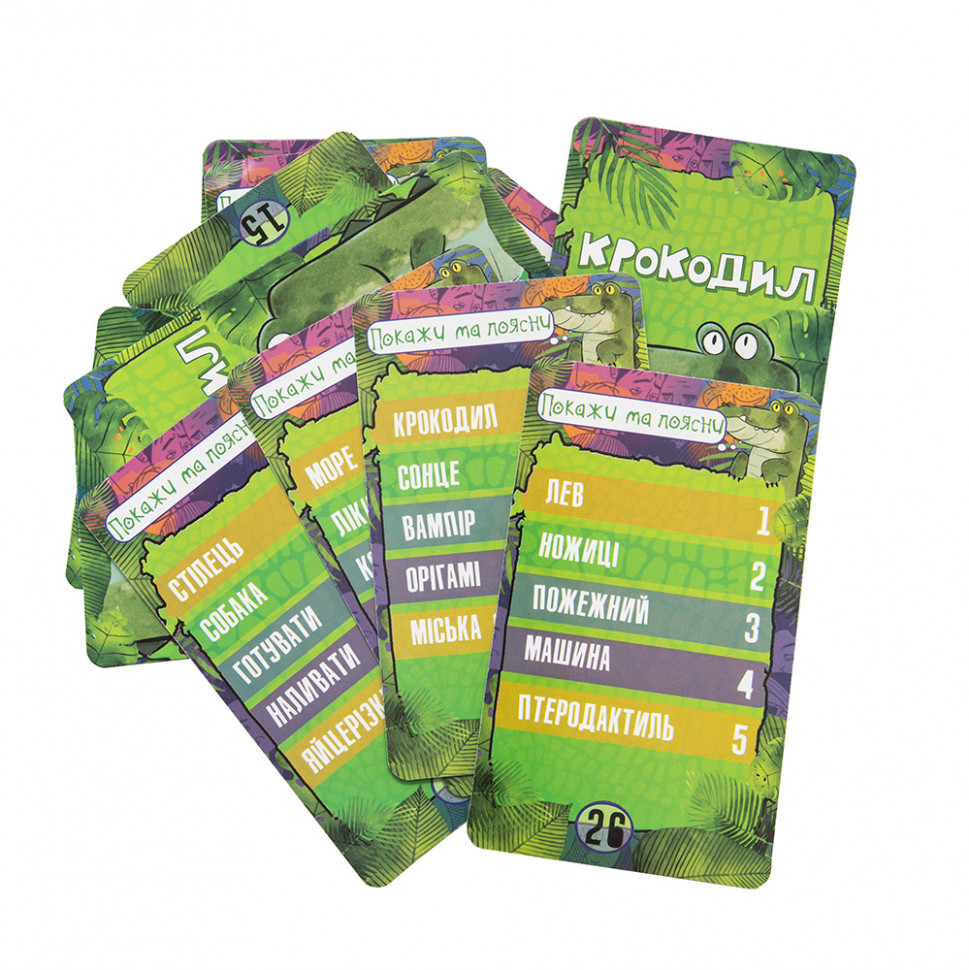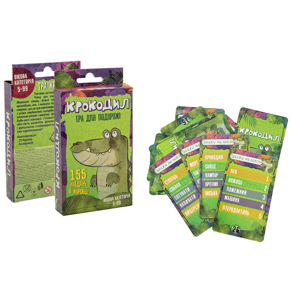 Захоплююча розвага для компанії - знаменита гра «Крокодил» (Strateg 30557) викличе веселощі з перших кроків. Зможе зацікавити не тільки дітей, а й дорослих, дасть можливість цікаво провести час всій родині, при цьому розвинути уважність, проявити свої здібності і розважитися. Завдання гри - вгадати предмет або дію загадану ведучим. Веселий сміх при цьому гарантовано! На початку, за вибором один з гравців стає ведучим, вибирає картки із завданнями і жестами описує предмет або яку-небудь дію Гравець першим правильно відповів на питання отримує можливість стати ведучим, при неправильній відповіді він повинен передати хід іншому гравцеві. На кожній картці наведені 5 питань. Грати можна командами. Правила прості, але гра захопить учасників з першої партії. Мова українська.