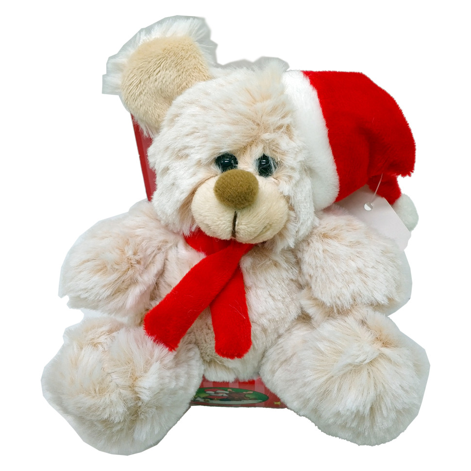 М'яка іграшка «Ведмедик Санта» – чудовий декор для прикраси інтер'єру до різдвяних канікул, а також чудовий варіант для подарунка. Іграшка довгі роки даруватиме святковий настрій і створюватиме затишну атмосферу в будинку. Вона виготовлена з текстилю, тому приємна на дотик.