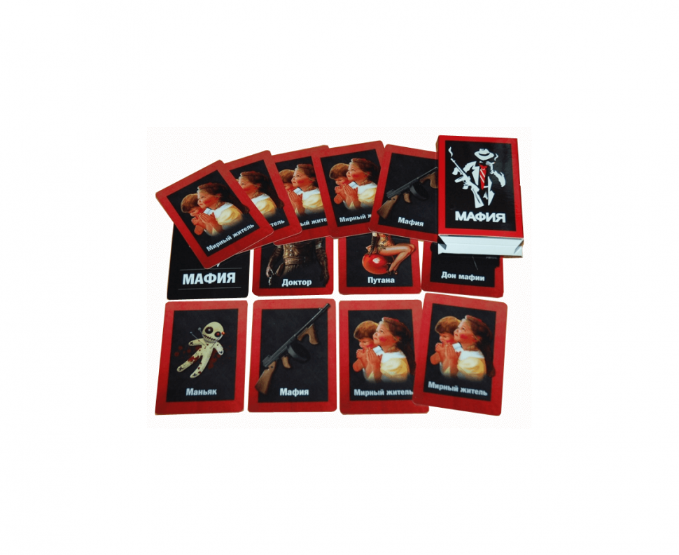 Мафія - командна психологічна покрокова рольова гра з детективним сюжетом для компаній від трьох чоловік.