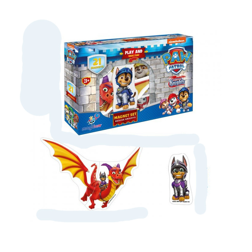 "Щенячий патруль «Рыцари»" - набор магнитов с любимыми персонажами, который обязательно понравится малышу. Набор состоит из 20 крепких и качественных магнитов. С ними ребенок легко погрузиться в мир приключений и веселья. Играя, можно составлять магнитные истории, считать и знакомиться с окружающим миром. Магниты хорошо крепятся на любую металлическую поверхность (магнитную доску, холодильник и т.п.), их удобно держать рукой и перемещать, закругленные края и довольно большой размер делают игру безопасной.