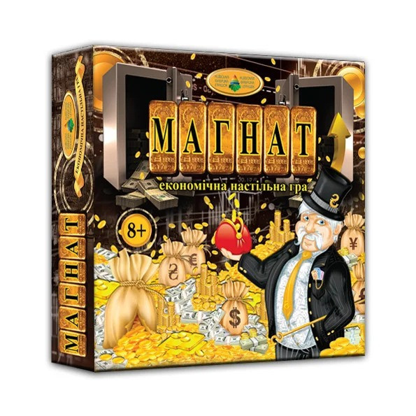 Інтелектуальна, розвиваюча, економічна, стратегічна гра «Магнат» допоможе цікаво і змістовно провести час у сімейному колі або з друзями. Відверне від комп'ютерів і планшетів, дозволить розвинути комунікативні навички.При достатньо простих правилах, гра змушує думати і планувати свої дії. Гра розвине спостережливість, тактичне і стратегічне мислення, дозволить опанувати тонкощі великого бізнесу, навчить рахувати і ефективно розпоряджатися грошима.На початку гри всі гравці отримують однаковий стартовий капітал, який вони повинні збільшити шляхом покупки, оренди або продажу нерухомості (земельних ділянок, будинків, готелів, підприємств), щоб отримати максимальний прибуток і добитися банкрутства інших гравців, а переможцем стане найбагатший.Фішки гравців починають рухатися з осередку «СТАРТ» і проходять ігрове поле коло за колом в напрямку руху годинникової стрілки. Гравці за бажанням можуть купувати підприємства або земельні ділянки в країнах, де зупинилася фішка. В ході гри потрібно намагатися купити всі земельні ділянки одного регіону або підприємства однієї галузі. В такому випадку збір на користь власника з фішок інших гравців, які опинилися на даних клітинах, подвоюється. Іноді гравці можуть потрапити на Біржу або в Поліцію, витягнути картки «Офіс», «Шанс» або «Форс-Мажор». Якщо гравцям потрібно залучити додаткові кошти, Банк може надати кредит під заставу.Можливостей для прийняття рішення гравцем досить багато, тому виграшною стратегією служить уміле комбінування існуючих можливостей з оглядкою на кінцевий запас грошових коштів і кількість граючих.Винахідливість і кмітливість, вміле поєднання ощадливості і розумного ризику приведуть Вас до перемоги і обов'язково стануть в нагоді в реальному житті.