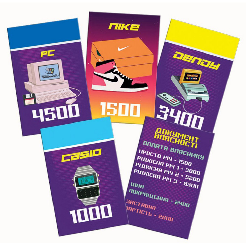 Монополія Ретро - це не просто гра, це справжня машина часу, яка перенесе вас у найяскравіші та найбезтурботніші дні вашого життя. Згадайте легендарні кеди Converse, стильний годинник Casio, захоплюючі ігрові приставки Dendy та Sega, а також касети та відеомагнітофони, які колись були омріяною мрією.