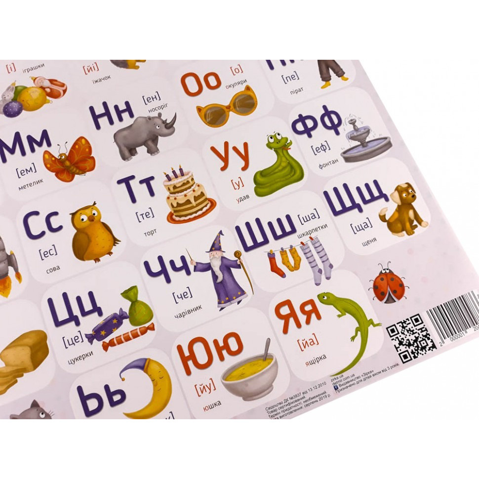 Плакат Українська абетка надруковано на щільному крейдованому папері з глянцевим покриттям.