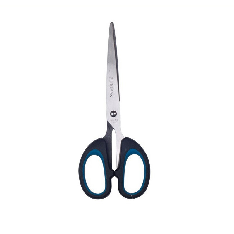 Ножиці офісні Buromax BM.4534 Ножиці офісні BUROMAX - точна лінія різання паперу, картону, фотопаперу, тканини. Забезпечують плавний і м'який хід різання. Ножиці оснащені точковою лінійкою на лезах для зручності різу певної довжини. Леза виготовлені з високоякісної нержавіючої сталі, а їхня заокругленість гарантує безпеку під час різання. Ручки виконані з якісного пластику чорного кольору з прогумованими блакитними вставками (Ваша зручність у роботі). Ергономічна форма ручок забезпечує комфорт під час роботи. Упаковані в індивідуальну блістерну упаковку відкритого типу. Ножиці офісні BUROMAX - точна лінія різання Вам гарантована.