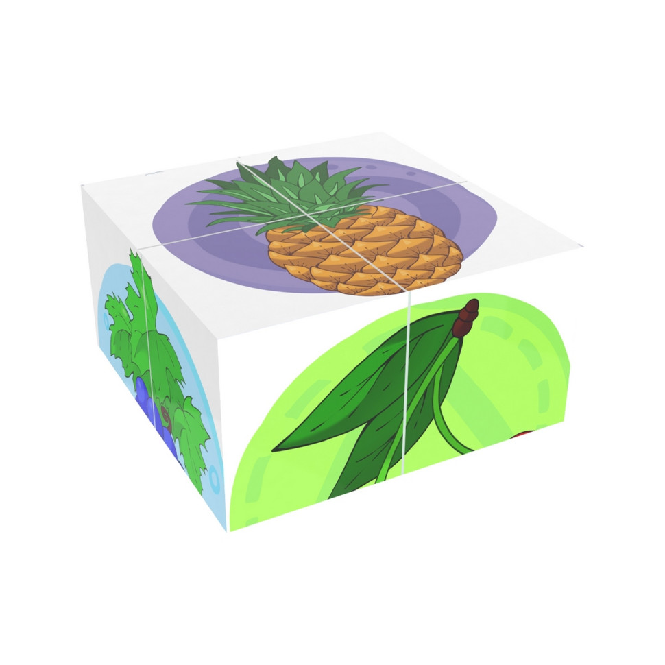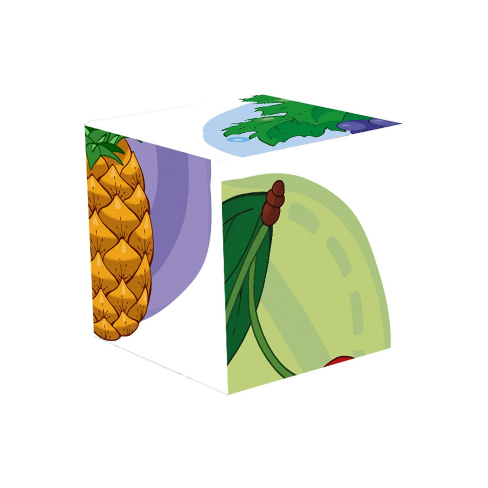 Кубики-пазли "Фрукти" -цікава та одночасно корисна розвиваюча іграшка. У наборі 4 кубики із зображеннями різних фруктів. На кожному боці кубика – частина яскравого малюнка. І лише правильно склавши 4 кубики – отримаємо цілий малюнок. Збираючи кубики-пазли, малюки розвивають дрібну моторику, уважність, логічне мислення та пам'ять. Такі ігри допомагають вивчити кольори та назви фруктів. Граючи разом із дорослими, діти добре розвивають мову, оскільки часто повторюють нові слова під час гри. З кубиків можна зібрати 6 малюнків: виноград, яблуко, вишню, ананас, банани, полуницю. Іграшка виготовлена із міцного та безпечного пластику, без запаху. Розмір кожного кубика: 4х4х4 см. Розмір упакування: 8х8х4 см.