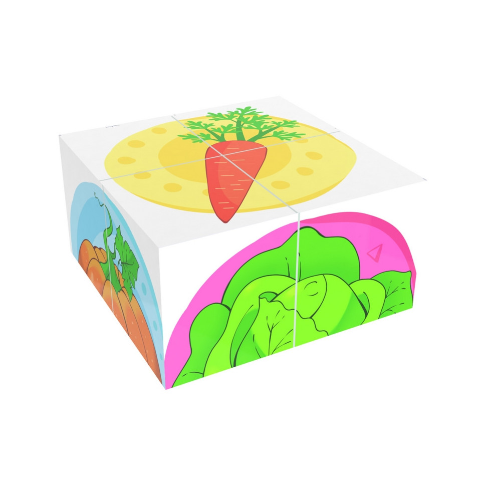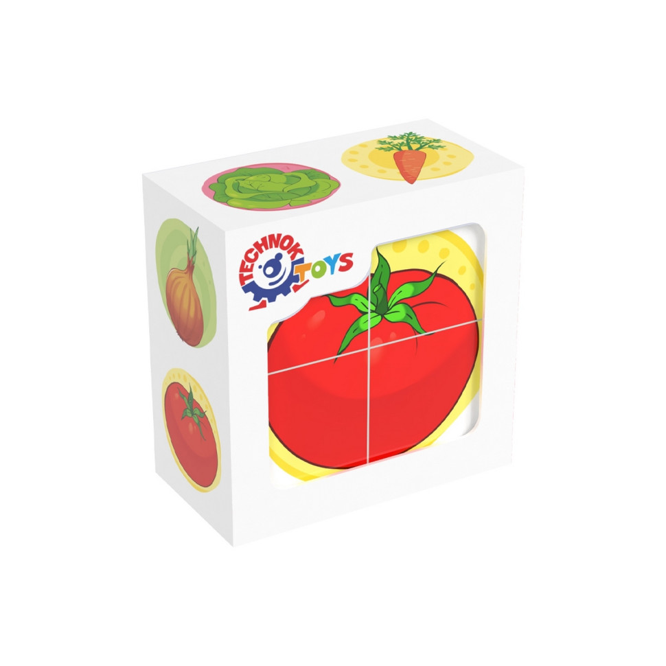 Набір складається з 4 кубиків, на кожній грані кубика є фрагменти зображення овочів, які потрібно скласти в один малюнок. Розвиває логічне мислення, моторику пальців, фантазію. Розмір кожного кубика: 4х4х4 см. Розмір упакування: 8х8х4 см.