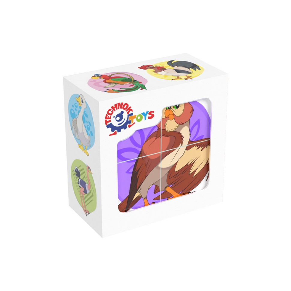 Набір із 4 кубиків, на кожній грані кубика фрагменти зображення птахів, які потрібно скласти в один малюнок. Розвиває логічне мислення, моторику пальців, фантазію. Розмір кожного кубика: 4х4х4 см. Розмір упакування: 8х8х4 см.