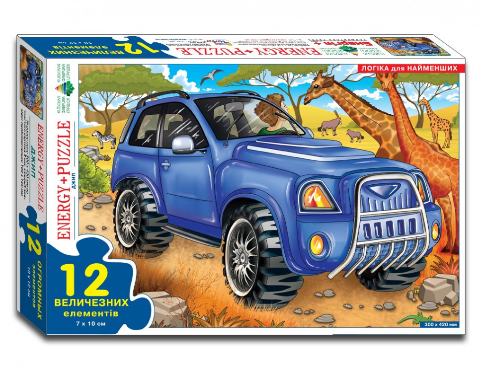 Максі Пазл 300 х 420 ммКомплектність:12 елементів з картону товщиною 2 мм. Кожен елемент приблизно 100 х 120 мм