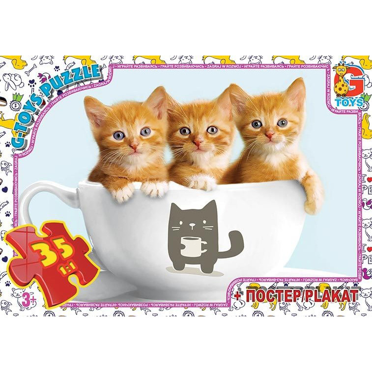 Торгова марка G-Toys, вироблено в Україні. Ліцензія. Комплектність: 35 пазлів, розмір полотна 210 мм х 300 мм + постер (плакат) з зображенням пазла. Пакування коробка : 19 см х 13 см х 3 см. Чудовий, яскравий пазл з щільного картону створений для дітей молодшого віку. Стимулює в дитині сенсорне сприйняття та інтелектуально-пізнавальний розвиток. Великі яскраві деталі, спеціально призначені для маленьких дитячих ручок, легко з 'єднуються між собою і сприяють розвитку дрібної моторики рук.