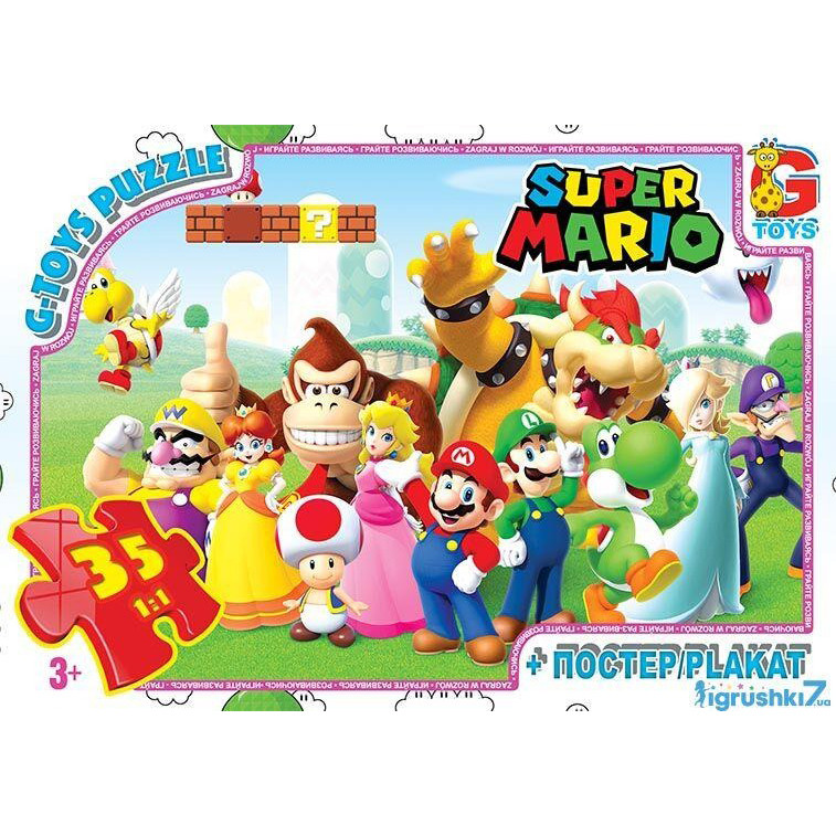 Торгова марка G-Toys, вироблено в Україні. Ліцензія. Комплектність: 35 пазлів, розмір полотна 210 мм х 300 мм + постер (плакат) з зображенням пазла. Пакування коробка : 19 см х 13 см х 3 см. Чудовий, яскравий пазл з щільного картону створений для дітей молодшого віку. Стимулює в дитині сенсорне сприйняття та інтелектуально-пізнавальний розвиток. Великі яскраві деталі, спеціально призначені для маленьких дитячих ручок, легко з 'єднуються між собою і сприяють розвитку дрібної моторики рук.