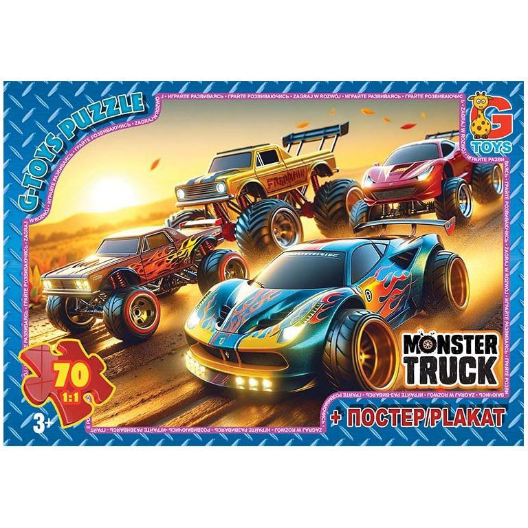 Торгова марка G-Toys, вироблено в Україні. Ліцензія. Комплектність: 70 пазлів, розмір полотна 210 мм х 300 мм + постер (плакат) з зображенням пазла. Пакування коробка : 19 см х 13 см х 3 см. Чудовий, яскравий пазл з щільного картону створений для дітей молодшого віку. Стимулює в дитині сенсорне сприйняття та інтелектуально-пізнавальний розвиток. Великі яскраві деталі, спеціально призначені для маленьких дитячих ручок, легко з 'єднуються між собою і сприяють розвитку дрібної моторики рук.
