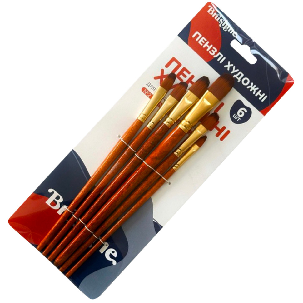 Набір із шести пензлів форми "філберт" для художніх робіт.