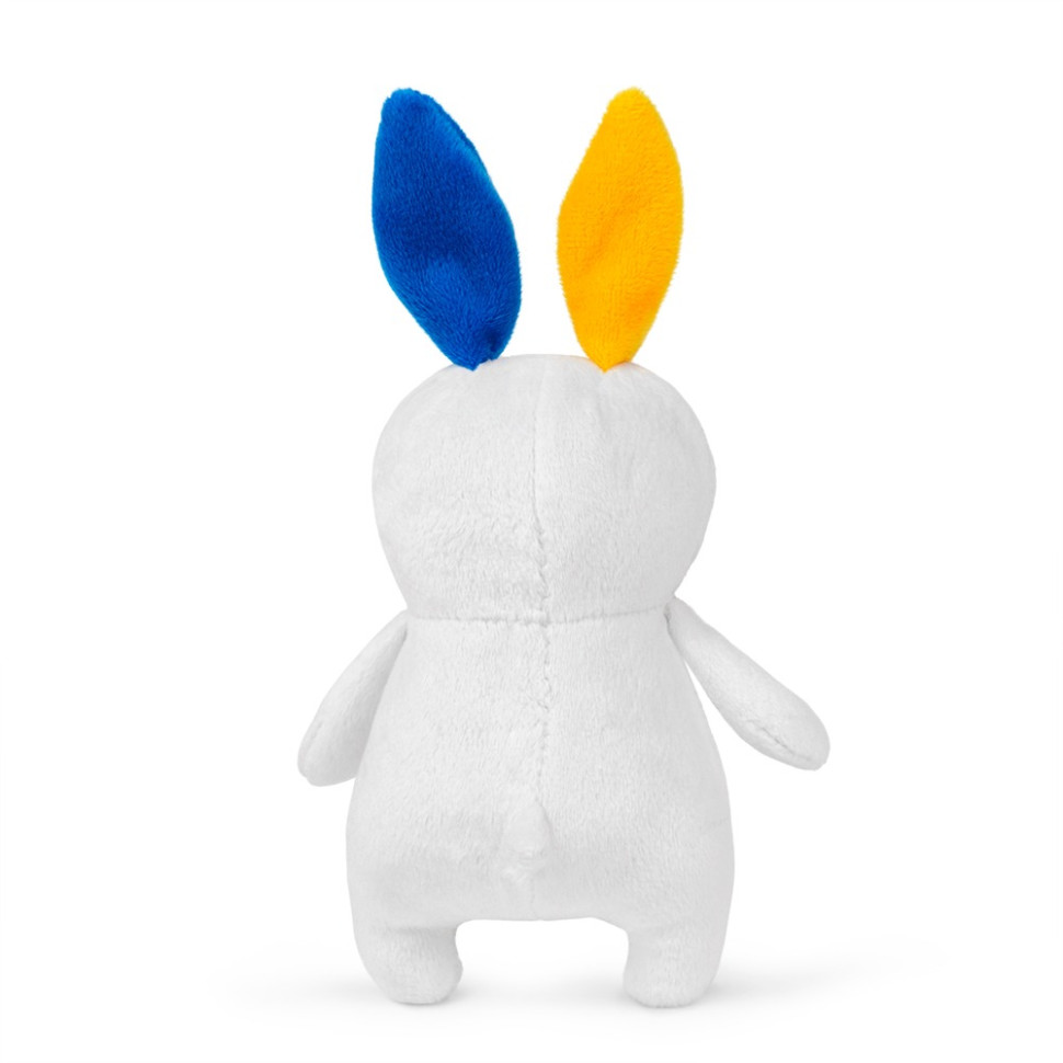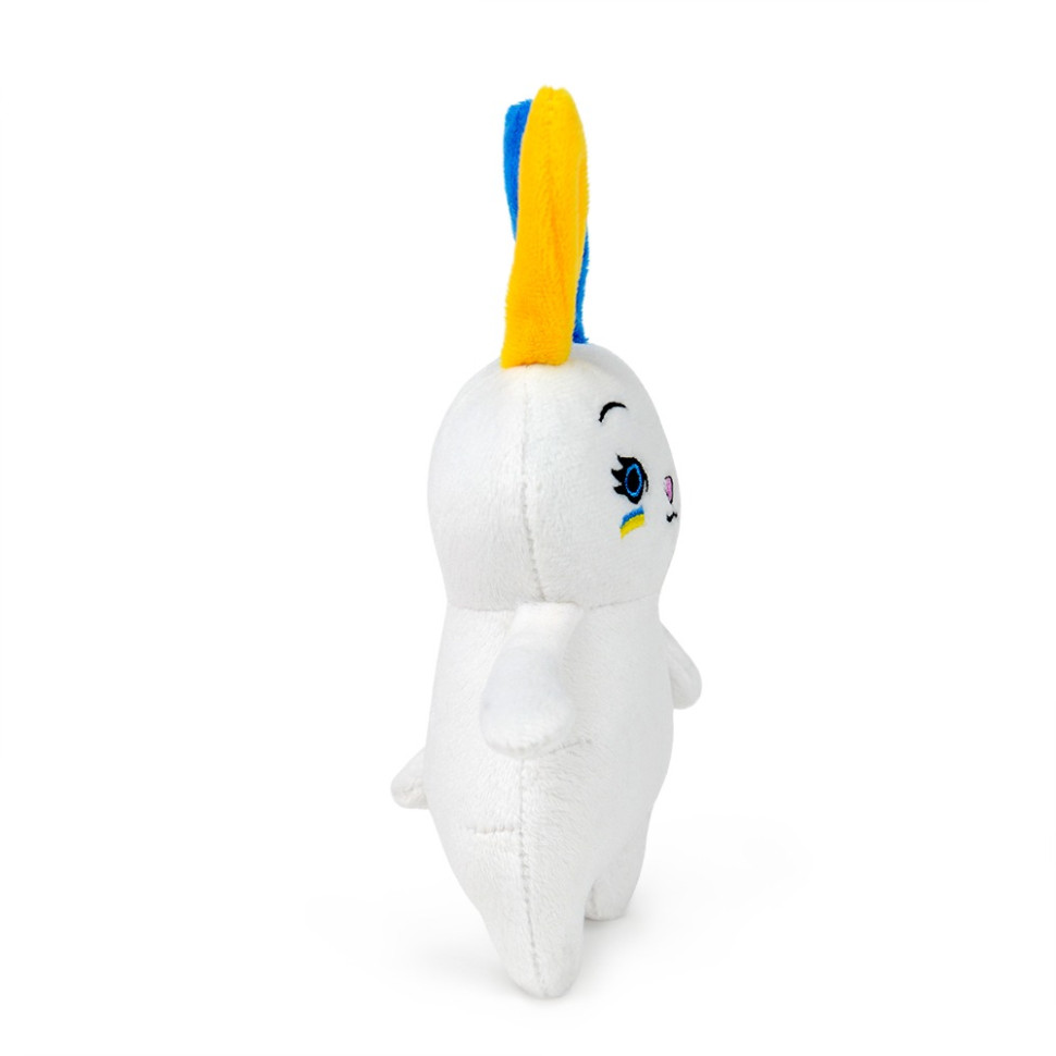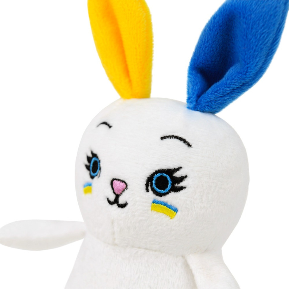 Маленьке, приємне на дотик та дуже симпатичне зайчення Меланія обожнює обійми. Плюшева іграшка має жовто-блакитні вуха, вишиту мордочку та щічки в кольорах прапору України.