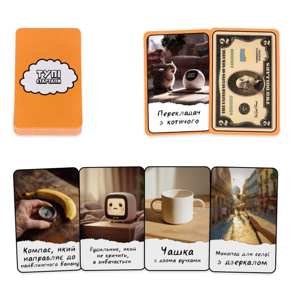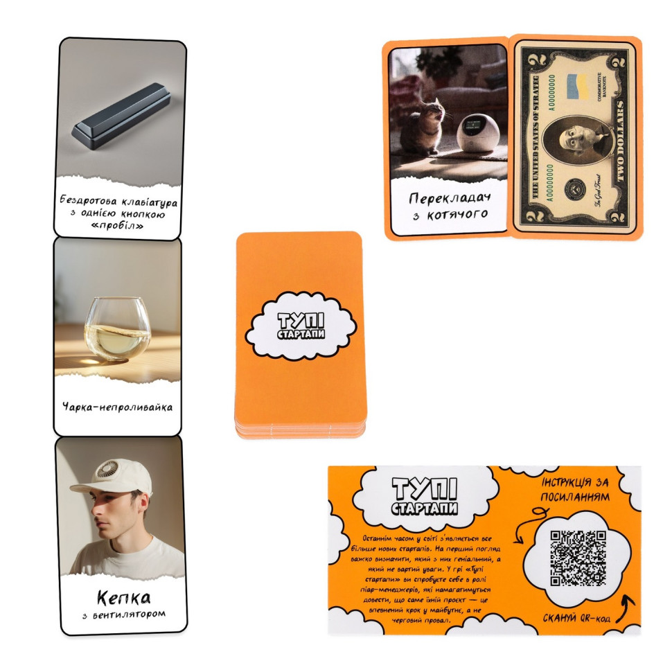 Тупі стартапи — настільна гра для компаній з почуттям гумору, у якій потрібно презентувати найдивніші та найсмішніші “стартапи”.