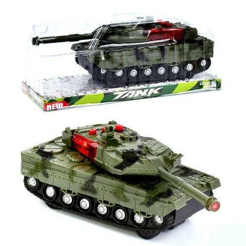 Військовий ігровий танк чудово підійде для розігрування захоплюючих сюжетів на тему воєн. Танк виконаний із пластику в сірому камуфляжному кольорі. Поворотне дуло танка оснащене цікавими ефектами, що наповнять гру атмосферою справжніх баталій. За рахунок батарейок, якими укомплектована іграшка, він відтворює кумедні звуки і випромінює яскраве миготливе світло.